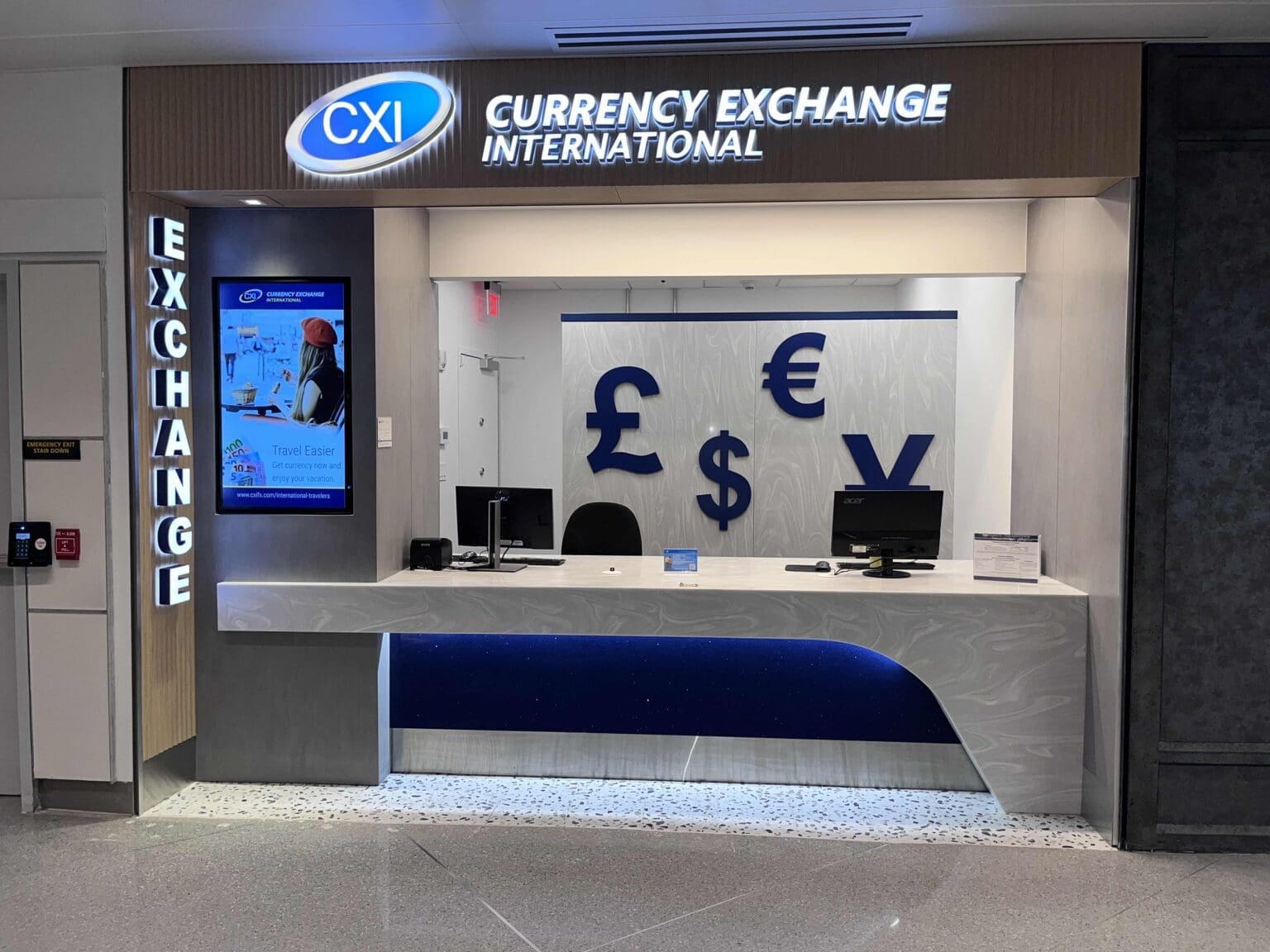 Today, the Terminal 8 retail hall remains fully operational, and the Currency Exchange store is thriving within a polished, functional, and visually striking environment that meets the demands of high‑traffic airport retail.